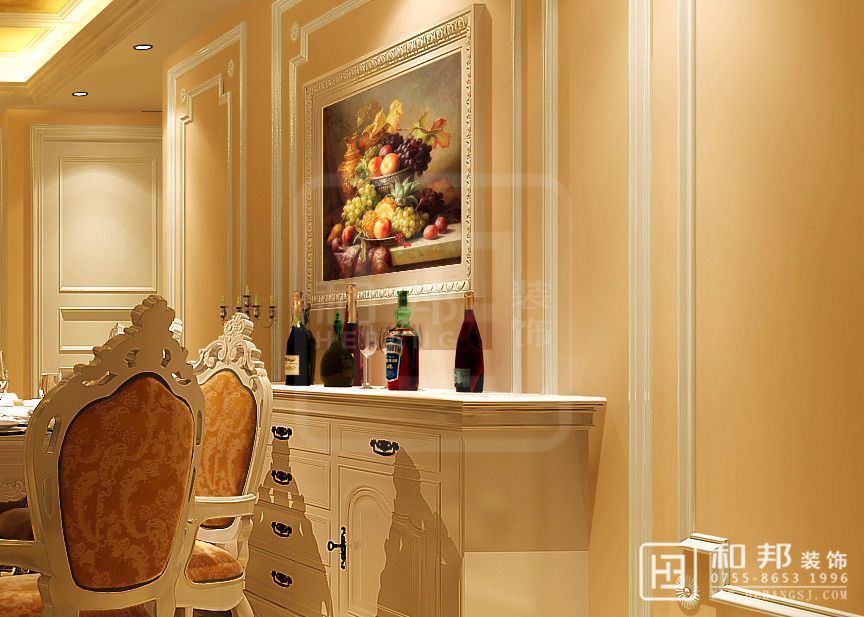 利用簡歐的精致簡潔,再加上整體的淡黃色基調,配合燈光家具,打造一個舒適典雅的家居環境。