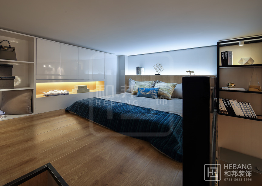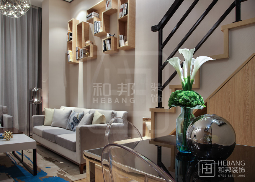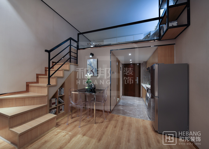Loft公寓借助其層高的優勢,可以盡情的對其空間進行分割利用。設計注重輕裝修重裝飾,從軟裝入手提升樣板間的空間體驗,借用樓梯增強收納空間,簡約和靈動空間能給許多年輕人舒適自由