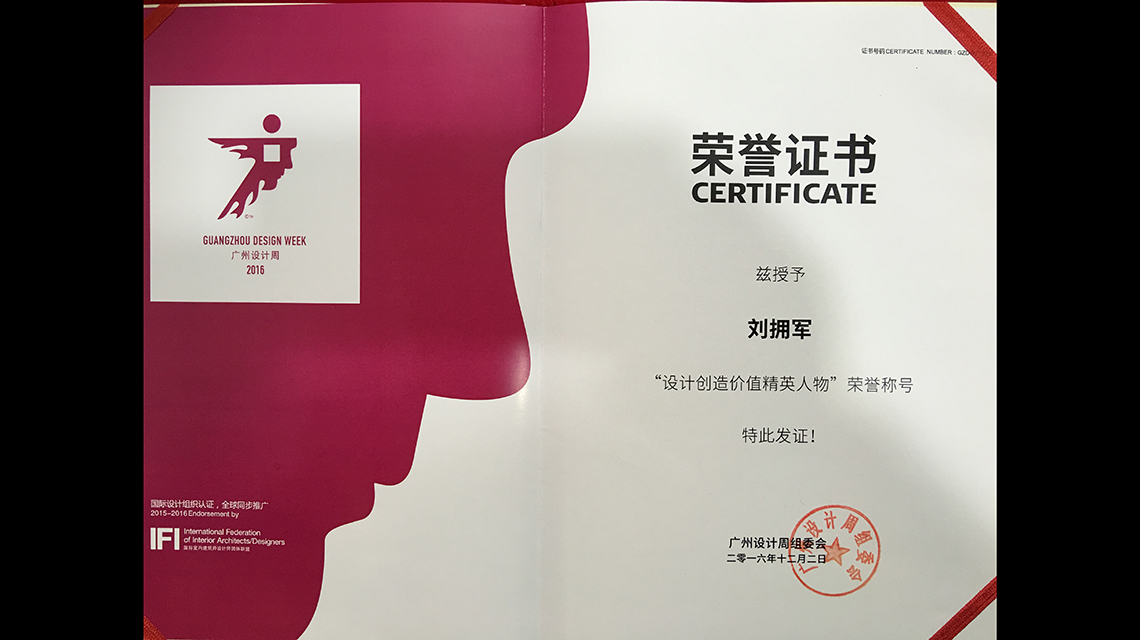 廣州設(shè)計周:我司總經(jīng)理兼首席設(shè)計總監(jiān)劉擁軍在廣州設(shè)計周上發(fā)表了《設(shè)計驅(qū)動生產(chǎn)力》的精彩演講,在此期間設(shè)計總監(jiān)劉擁軍、吳新奮、劉作平三人一并榮獲【設(shè)計創(chuàng)造價值精英人物】榮譽稱號!